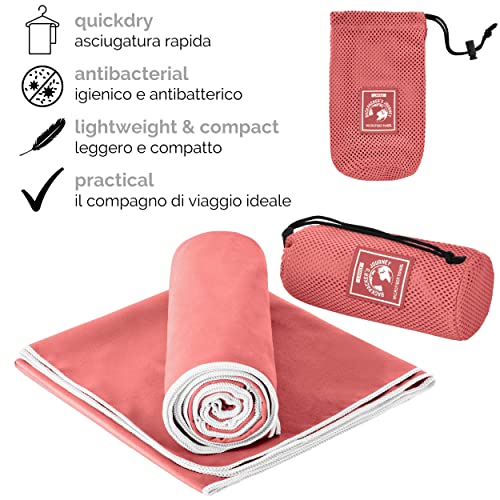 Backpacker's Journey Asciugamani in microfibra in S M L XL. Set di asciugamani da viaggio leggeri, ad asciugatura rapida, assorbenti e antibatterici (salmone XL&M)