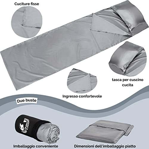 Backpacker's Journey Sacco Lenzuolo, Sacco a Pelo da Viaggio Ultra-Piccolo e Ultraleggero (155g), Sacco a Pelo da capanna Leggero, Sottile. Ideale per Backpacking, ostelli e cabine (Grigio)