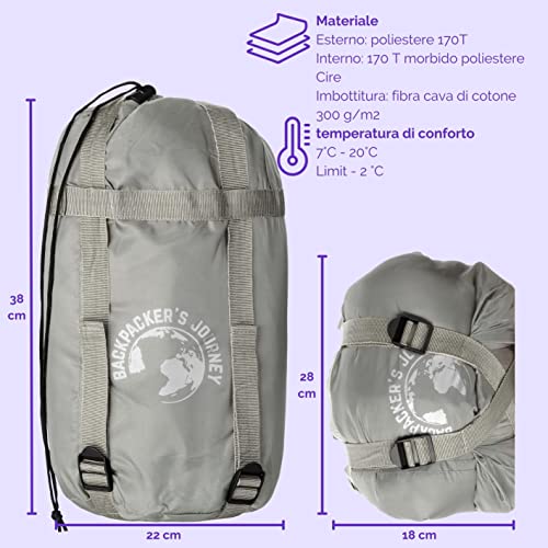 LEGGERO E COMPATTO: il sacco a pelo Backpacker's Journey pesa solo 1,4 kg, può essere compresso fino a metà del suo volume e quindi ha un ingombro in valigia molto ridotto per le sue prestazioni termiche. Ideale per essere preparati ad ogni evenienza