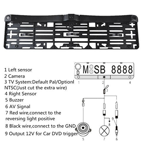 Backup Car Camera License Plate with 2 Radar Detector Sensors BiBi Alarm Indicator Video Parking Sensor 170 Viewing Angle, Car License Plate Frame Mount Rear View Camera Waterproof Reverse Backup Rear View Camera