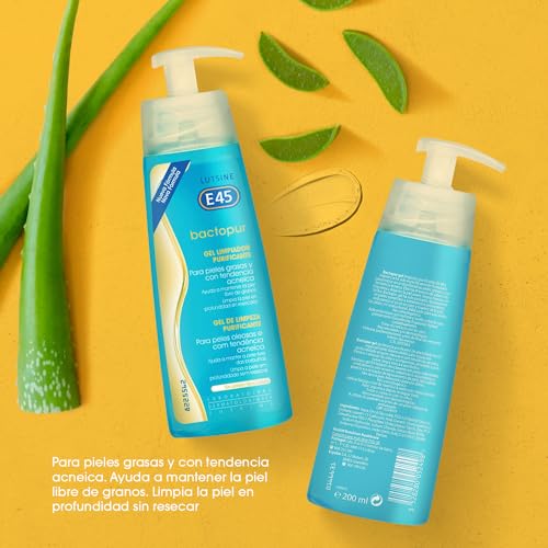 Bactopur Lutsine E45 - Gel detergente purificante, Pulisce a fondo la pelle grassa e acneica, 200 ml