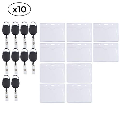 Set di badge porta nome in plastica PVC con avvolgicavo - Badge di identificazione 10 orizzontale
