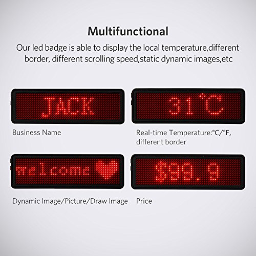 Tag Badge Programmabile con Targhetta Identificativa a LED, VADIV NT02 Badge Porta Magnetica con Magnete a Scorrimento, Micro USB Ricaricabile,Nuova Versione 12 * 48 Rosso
