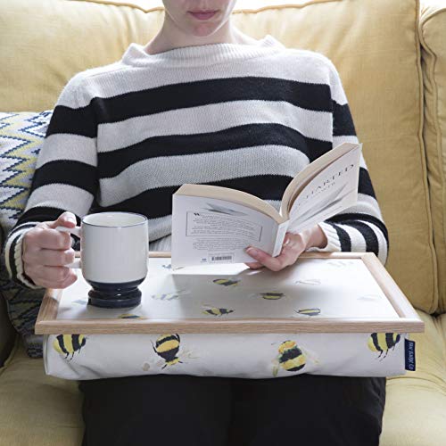 Blue Badge Co - Vassoio con cuscino da tavolo con api, con base imbottita, per TV, con superficie pulita e telaio in vero legno, 700 g