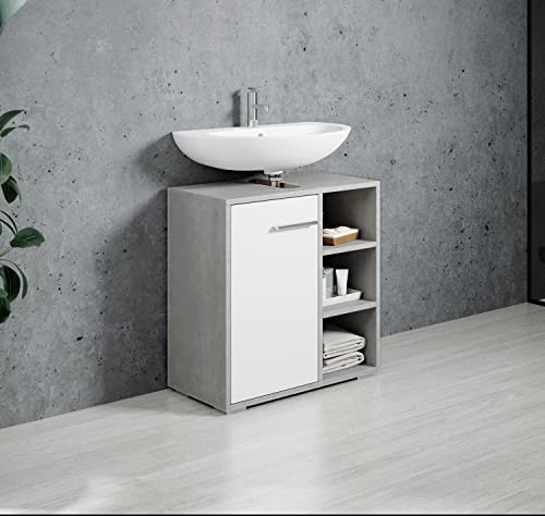 Badplaats B.V. Mobili da Bagno Neptunus Cemento con Bianco - Armadio mobiletto lavabo Mobili Armadietto