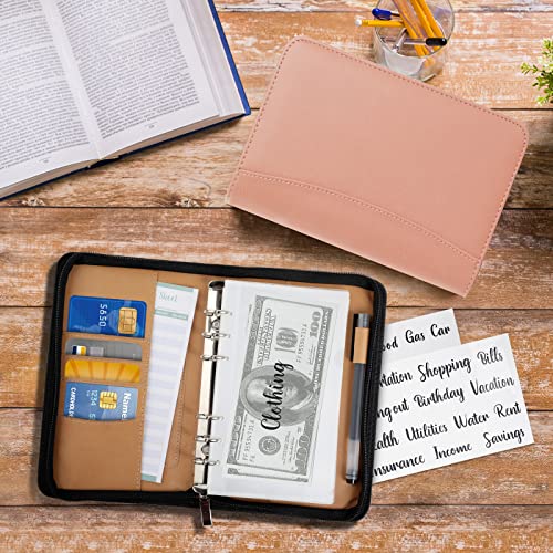 Badve A6 Budget Binder, A6 PU Raccoglitore Soldi Quaderni ad 6 Anelli con 14 Binder Tasche/12 Fogli di Bilancio di Spesa/4 Etichette Autoadesive per Budget Planner, Binder Money - Rosa