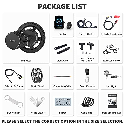 【Tutti gli accessori inclusi】 Viene fornito con tutti gli accessori necessari: potente motore a trasmissione centrale BBS02B 48V 750W 68-73MM, sensori freni idraulici (o leva del freno, inviaci una e-mail), gas per pollice, pignone 44T e protezione catena in plastica (o 46T/48T/52T, inviaci un'e-mail), manovelle, display opzionale. S, sensore di velocità e magnete, cavo 1T4, dadi, batterie sono opzionali, forniamo un cavo di conversione della batteria XT60.