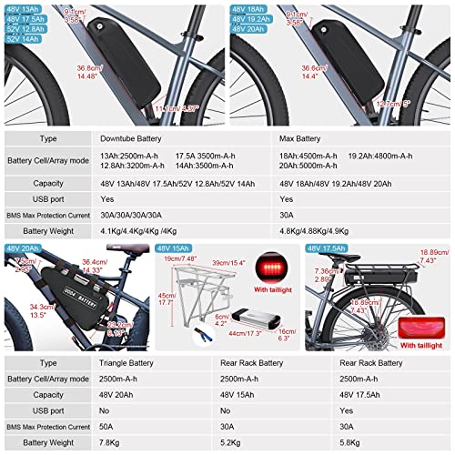【Garanzia e regali】Il motore e la batteria hanno una garanzia di un anno. In caso contrario, non cambiare il connettore XT60 della batteria sul motore. Offriamo chiavi inglesi BBS, fari, adesivi da 250 W, guanti bianchi, strumento di rimozione della manovella, nastri di plastica, custodia per batteria Hailong 11,6 Ah/13 Ah/17,5 Ah 52 V 14 Ah/12,8 Ah (ma la batteria Hailong da 48 V 18 Ah e la batteria portapacchi non hanno una borsa per batteria) come regalo.