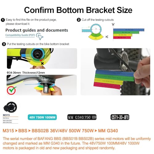 [Standard JIS] Adatto per freno a disco e freno a V, non freno a contropedale. Montare un movimento centrale JIS standard da 100 mm, il diametro interno dovrebbe essere 34 mm. Prima dell'acquisto, scaricare la guida alle taglie per misurare la distanza tra movimento centrale e fodero orizzontale e verificare se la dimensione del motore è compatibile con il movimento centrale. Se il tuo movimento centrale è 90-99MM, contattaci per ottenere i distanziali