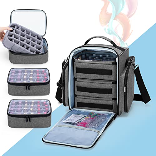 SPAZIO DI CONSERVAZIONE PRINCIPALE - Lo scomparto principale contiene 3 custodie rimovibili per riporre 72 flaconi di smalto per unghie (15 ml/0,5 fl.oz) in totale. Questi casi sono adatti anche per la polvere da immersione. L'inserto divisorio delle 3 borse può essere rimosso e utilizzato come trousse.