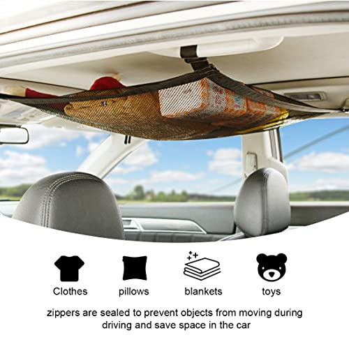 Salvaspazio: portaoggetti da soffitto, design a rete, ripiano superiore, aumentano lo spazio in auto. La capacità è aumentata, gli oggetti sono stabili e non cadono ed è facile da trasportare. Può essere utilizzato per riporre vestiti, coperte, peluche, documenti, snack e molto altro ancora.
