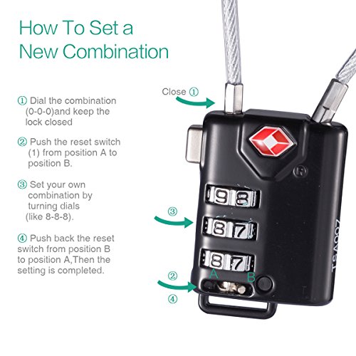 ALTA QUALITÀ - 2 pack portable TSA approved security Locks, made of high quality zinc alloy and plated steel, environmental protection wire rope lock rope