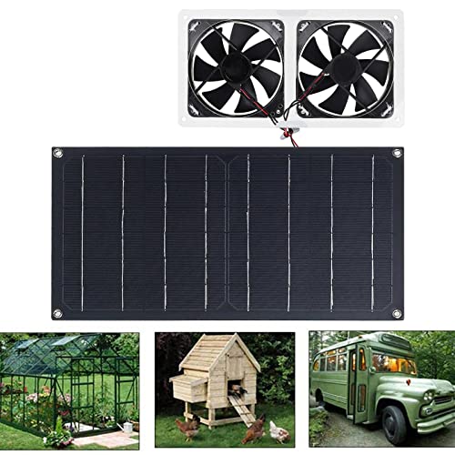 ℭVentilatore di scarico ad energia solare: un'ottima soluzione per piccoli pollai, serre, capannoni, case per animali domestici, scarichi delle finestre nella calda estate. Questa ventola di scarico a energia solare da 100 W dotata di due ventole può spingere fuori l'aria calda e spingere dentro l'aria fredda, abbassando efficacemente la temperatura interna e mantenendo l'aria fresca.