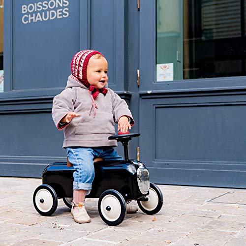 UN SOGNO CHE SI AVVERA: Che gioia vedere il proprio bimbo alla guida di una macchina per bambini ancora più scintillante di quella di mamma e papà! L'auto cavalcabile Racer nera di Baghera è una magnifica mini auto per bambini che prende in prestito il design delle automobili d'epoca, le loro linee eleganti e la resistenza dei materiali con cui è fatta.