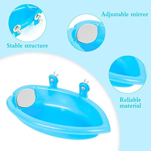 Bagni per Uccelli, 2Pezzi Vasca da Bagno per Uccelli Adatti a Piccoli Uccelli Come Pappagalli e Canarini, Vasca per Pappagalli ha Uno Specchio Regolabile per Attirare l'attenzione degli Uccelli (Blu)