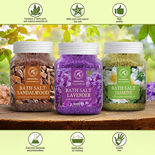 Set Sali da Bagno con 3x400g di Lavanda - Sandalwood - Gelsomino - Naturale al 100% - Ideale per Dormire Bene - Antistress - Bagno - Cura del Corpo - Benessere - Bellezza - Rilassamento - Spa