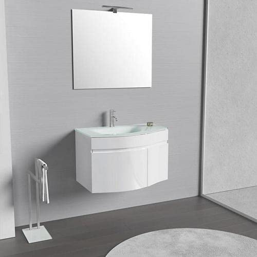 Bagno Italia Mobile Arredo Bagno Asia 80 cm mobile sospeso con lavabo cristallo bianco o tortora e specchio Mobili I