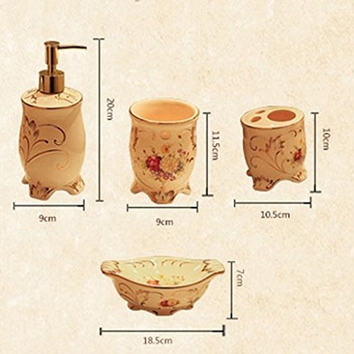 YWXG Bagno in Stile Europeo 5 Pezzi di Ceramica Set da Bagno Accessori per Bagno Portaspazzolino Distributore di Sapone Portasapone Tazza di risciacquo Set di Accessori da Bagno Completo