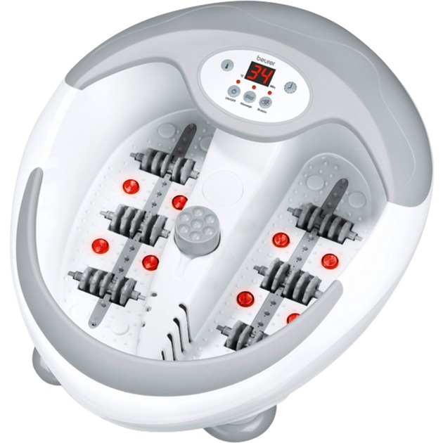 Con il bagnoschiuma Beurer FB50 regalate ai vostri piedi qualcosa di buono. È ottimo per la cura dei piedi a casa. La temperatura dell''acqua può essere regolata in cinque fasi. Oltre a un delicato massaggio a vibrazione, c''è anche un bagnoschiuma per i piedi con riflessologia plantare e un massaggio a secco tra cui scegliere. Altre caratteristiche speciali del bagnoschiuma FB50 sono i magneti integrati per la terapia del campo magnetico, i punti luce a infrarossi rilassanti e il plantare di supporto per massaggi. La durata desiderata della terapia può essere impostata tramite un timer.