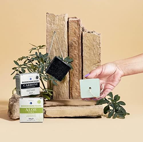 Bagnoschiuma Solido AMAS al CARBONE VEGETALE - Equivale a 3 Flaconi in Plastica - Detossificante e Riequilibrante - 125g- 100% Fatto a Mano in Italia - Naturale, Vegano, Plastic Free