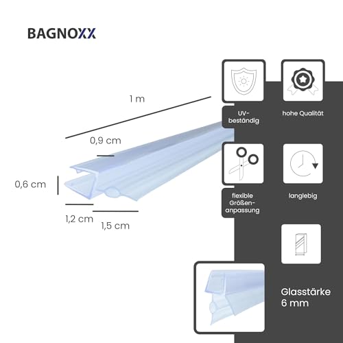 Bagnoxx Guarnizione doccia Guarnizione a labbro abrasivo con tubo flessibile trasparente 100cm, für 6mm Glasstärke