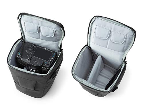 1 scomparto principale, 1 tasca frontale e 2 taschine laterali sono sufficienti per contenere il corpo macchina, l'obbiettivo ed altri accessori per fotocamere