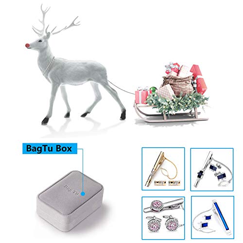 BagTu Crystal Galaxy juego de gemelos y Clip de corbata con caja de Regalo y tarjeta de felicitación, gemelos redondos Azul Oscuro y juego de Regalo de Clip de corbata para Hombre