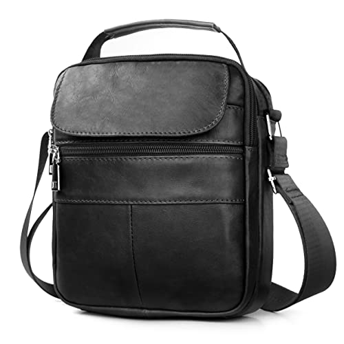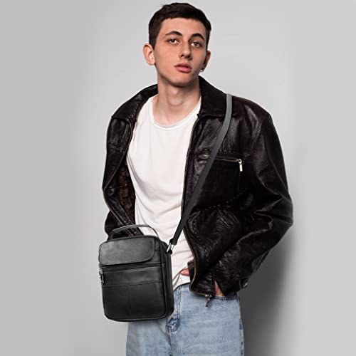 BAGZY Borsello Uomo Tracolla Pelle Borsello Uomo Pelle Grande Borse a Spalla Borsello Tracolla Uomo Borsa di Affari Messaggero Borsello Uomo Tracolla Crossbody Borsa da Viaggio (Nero)
