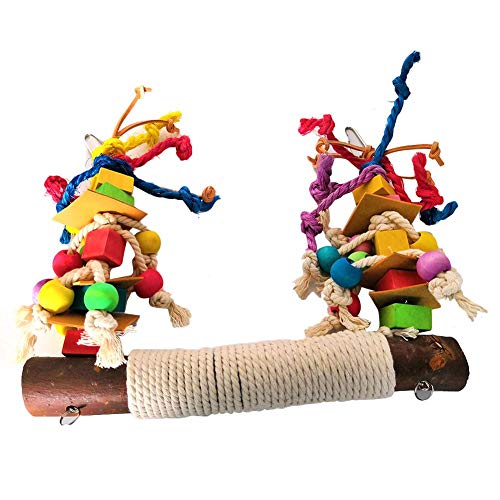 Materiali naturali e atossici: questo giocattolo per uccelli è realizzato con ganci in metallo, strisce di legno naturale, giocattoli da masticare tinti con materiali naturali e corda di cotone. È adatto a tutte le occasioni, sicuro e affidabile.