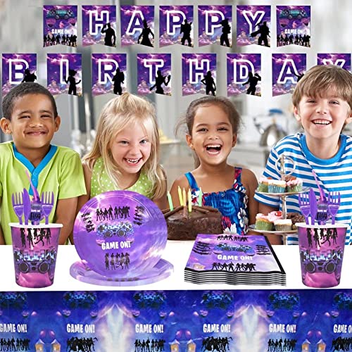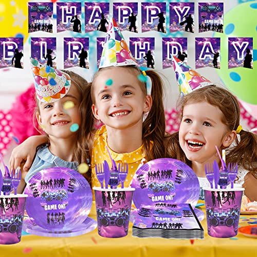 BAIBEI Gioco Compleanno Game Forniture per Feste di Gioco Bambini Compleanno Piatti per Feste USA e Getta Tazze Tovaglioli Tovaglia Carta Banner- Servire 10 Ospiti