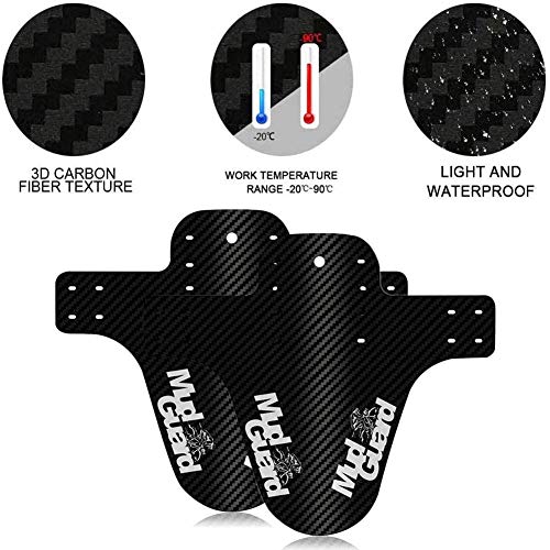 BAIBEI 2Pcs Paraspruzzi per Bicicletta MTB, Parafango Anteriore e Posteriore, Adatto a 650B 20"26" 27.5"29 Pollici con 10 Cavo di Collegamento (Nero Bianco, goffratura Piccola Fibra di Carbonio)