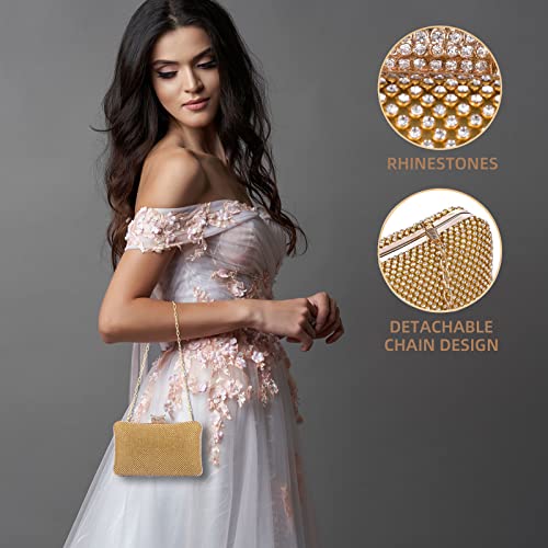 BAIGIO Pochette Oro Elegante, Clutch Donna Cerimonia Borsetta da Sera Strass Borsa a Tracolla per Matrimonio Festa
