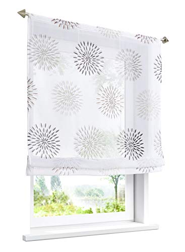 BAILEY JO Tenda a pacchetto con motivi circolari stampati, in voile trasparente (larghezza x altezza 100 x 140 cm, marrone con coulisse