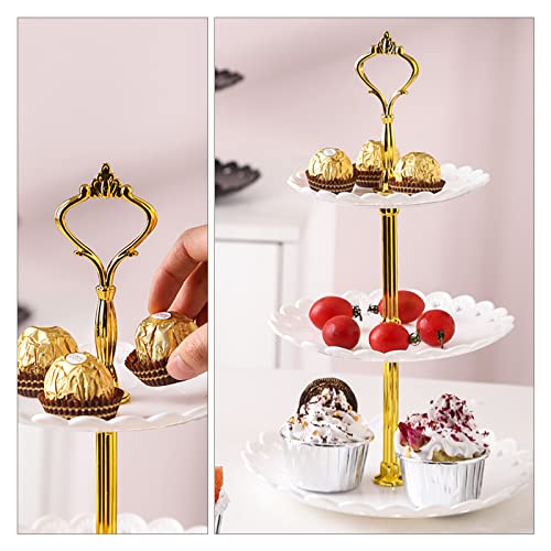 Bailinks Alzatina in plastica, 3 ripiani, supporto rotondo per dolci, pasticceria, supporto per torte, cupcake, caramelle, frutta, piatto da portata per matrimoni, feste, decorazioni per la casa