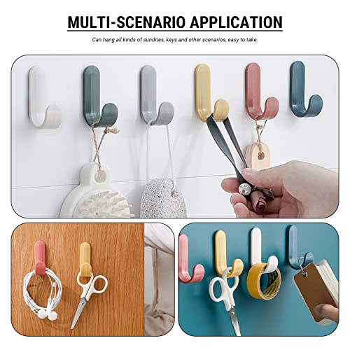 【Dimensioni e imballaggio】 I ganci a J hanno una lunghezza e una larghezza di 6 * 3,2 cm / 2,4 * 1,3 pollici. 6 ganci autoadesivi per appendere a parete in un mix di 6 colori, bianco, rosso, giallo, grigio, blu e verde.