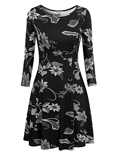Baishe nggt Donna Skater vestito con collo rotondo 3/4 di Arm fattern Stretch Basic appendiabiti
