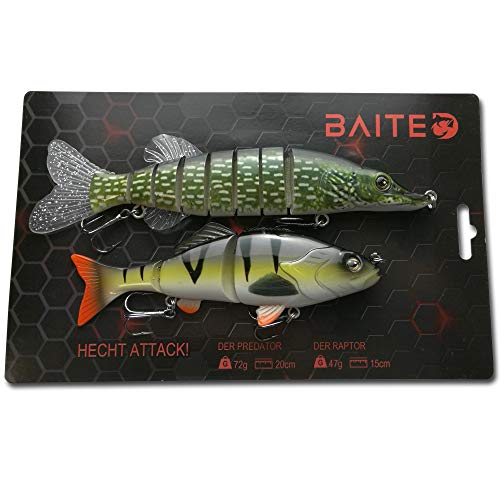 Estremamente maneggevole: con le nostre esche artificiali a più pezzi di Baited non andrete a casa a mani vuote. Perché questa esca artificiale imita il movimento di nuoto di un pesce persico e di un luccio.