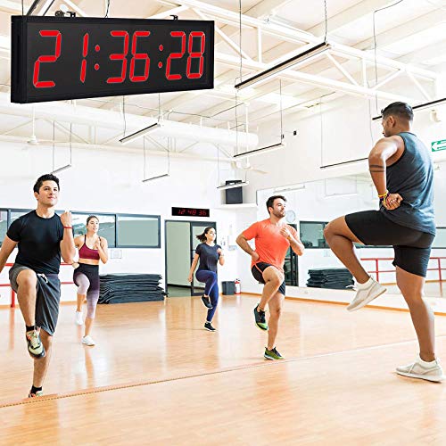 BaiTTang Orologio da palestra digitale a LED con telecomando, cronometro, allarmi, timer, umidità e temp, 27.8x7.6 pollici orologio da parete oversize per ufficio, casa, luogo pubblico (Color: Red)
