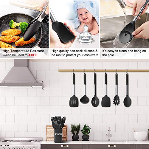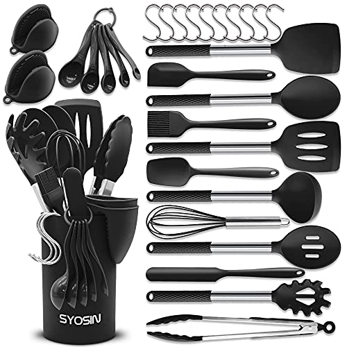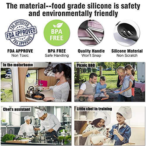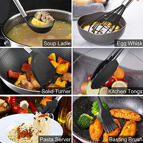BAIYING Set Utensili da Cucina, 30 Pezzi Utensili Cucina - Con Antiaderente & Resistente al Calore, Senza BPA, Utensili da Cucina da Silicone Con Manico in Acciaio Inossidabile - Nero
