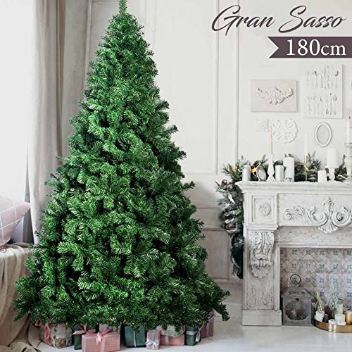 BAKAJI Albero di Natale Gran Sasso Super Folto Pino Verde Base Croce in Metallo Pieghevole Altissima Qualità Facile Montaggio con Rami ad Innesto (180 cm)