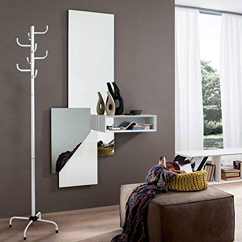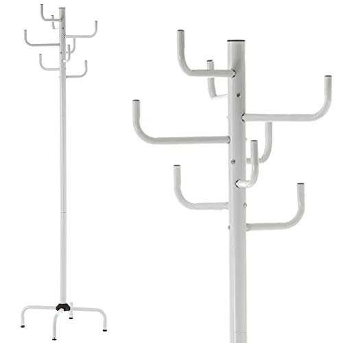 BAKAJI Attaccapanni Appendiabiti Design Moderno a Piantana da Terra in Metallo con 8 Ganci Appendi Abiti e Base a Croce Dimensione 40 x 40 x 183 cm Arredamento Ingresso Casa (Bianco)