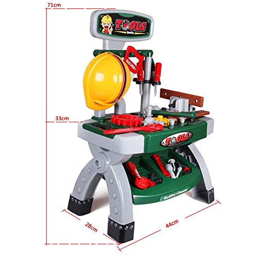 BAKAJI Banco Lavoro Officina per Bambini con Scaffali Elmetto Morsa da Banco Attrezzi e Accessori da Lavoro 44 x 28 x 70 cm