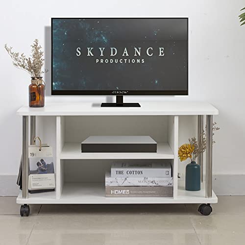 Bakaji Carrello Porta Tv Bianco con 4 ruote Mobile orizzontale basso per Televisore Legno MDF Carrello Tavolino Moderno di Design Arredamento con Ripiani Mensole Portaoggetti Funzionale