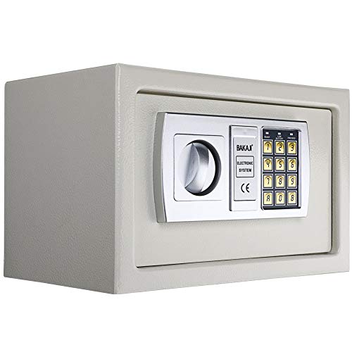 Bakaji Cassaforte a Muro Numerica Digitale 31 x 20 x 20 cm Cassetta di Sicurezza Elettronica Casa Albergo Hotel Safe + 4 x AA Batterie e Chiavi di Emergenza (Beige)