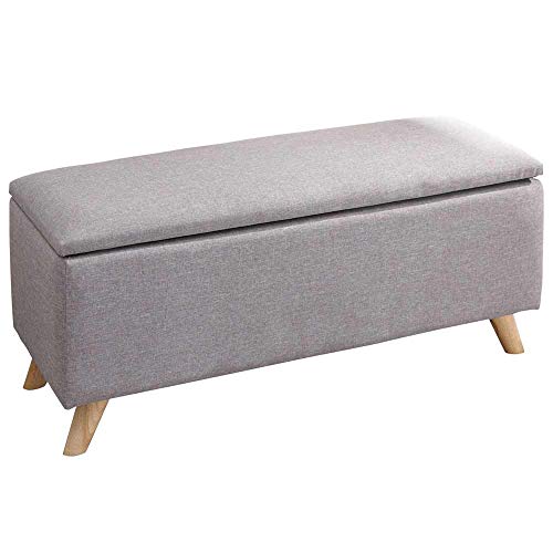 BAKAJI Cassapanca Pouf Contenitore Poggiapiedi Camera da Letto Panca Sgabello Struttura in Legno Rivestimento in Tessuto Hopsack Seduta Apribile Imbottita 103 X 40 X 44.5 cm (Grigio Chiaro)