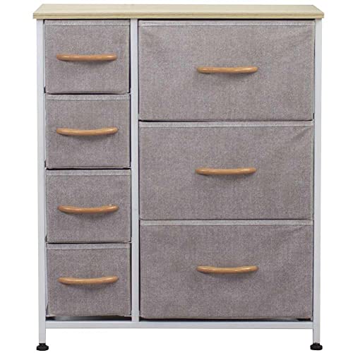 BAKAJI Cassettiera Comodino 7 Cassetti Ripiani Capiente Comodo Mobile Mobiletto Casa Resistente Tessuto Versatile Multicolor Robusto Arredamento Salvaspazio Dimensioni 72,5x61,5x30cm (Grigio Chiaro)