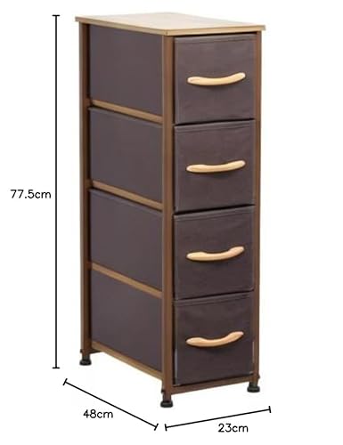 BAKAJI Cassettiera Resistente 4 Ripiani Multicolor Mobile Mobiletto Armadio Armadietto Tessuto Bicolor Robusto Multiuso Arredamento Ufficio Salvaspazio Dimensioni 77,5x23x48cm (Marrone)