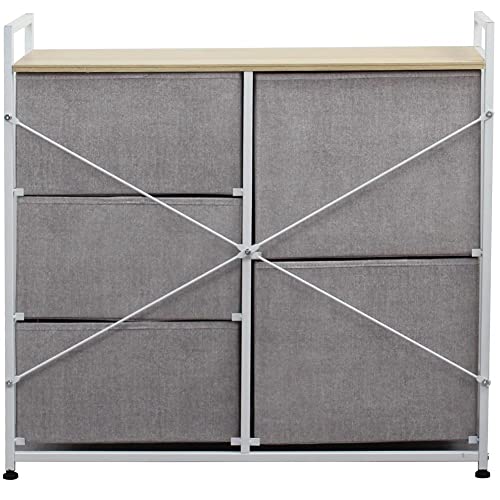 BAKAJI Cassettiera in Tessuto con 5 Cassetti Struttura in Metallo e Piano Superiore in MDF, Mobile Versatile e Capiente Ideale per Ingresso, Camera da Letto, Soggiorno, 77,5x83x29 cm (Grigio)