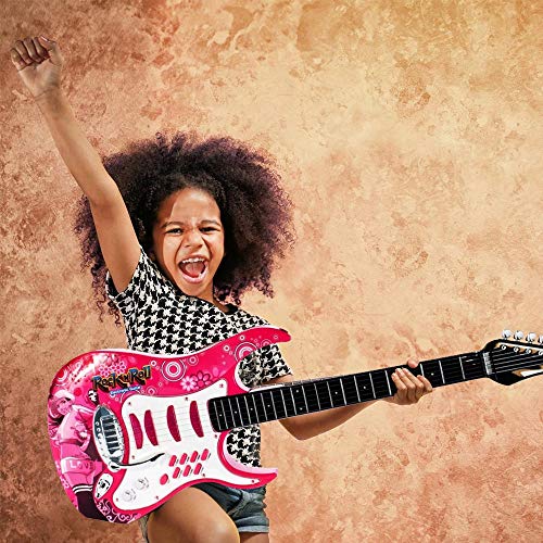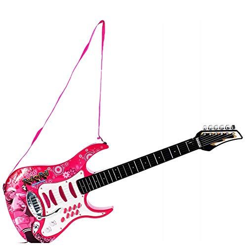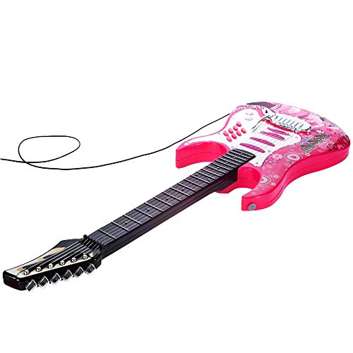 BAKAJI Chitarra Elettrica con Microfono Karaoke e Cassa Amplificatore AUX MP3 Giocattolo Bambini con Luci Effetti Sonori Musicali Musica Demo Tracolla e Asta Regolabile (Rosa)
