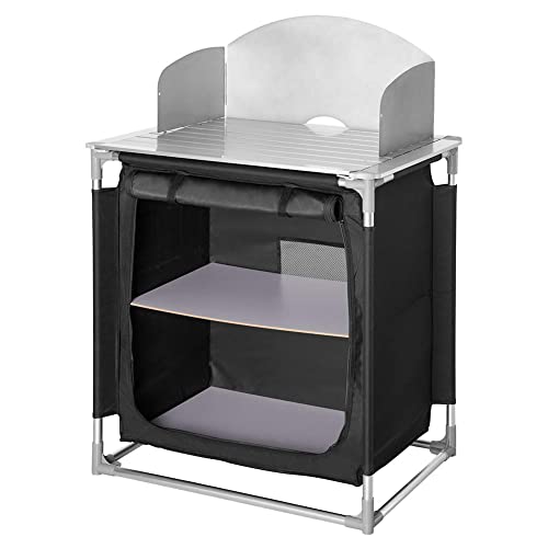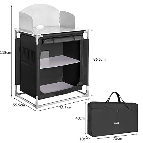 BAKAJI Cucina Armadio Mobiletto Tavolo Da Campeggio Picnic Compatta Portatile Pieghevole Con Telaio In Alluminio Con Cucinotto Paraspruzzi Borsa Per il Trasporto, Nero